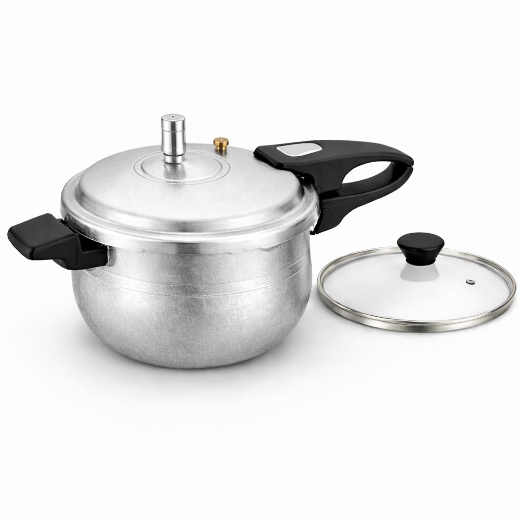 NestOra 2-in-1 Aluminum Pressure Cooker is designed to make cooking faster, easier, and more reliable. With its dual-function design, you can use the pressure lid to perfectly cook tough foods like beef, mutton, chickpeas, and lentils in less time, and switch to the open cooking lid for everyday meals such as curries, rice, and stews. Built with heavy gauge aluminum, it ensures durability, strength, and excellent heat efficiency for better taste and consistent results. The secure pressure system and heat-resistant handle offer safe, worry-free cooking every time, making it a dependable choice for your kitchen. Whether you are preparing hard meat dishes that need strong pressure or regular family meals, NestOra delivers performance, convenience, and confidence in one reliable cooker. Designed for everyday family use, it’s easy to handle, practical to clean, and built to last — a trusted cooking partner for your home kitchen.